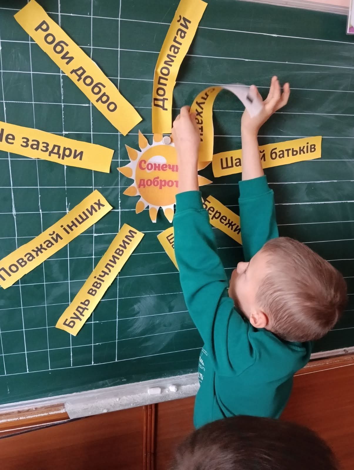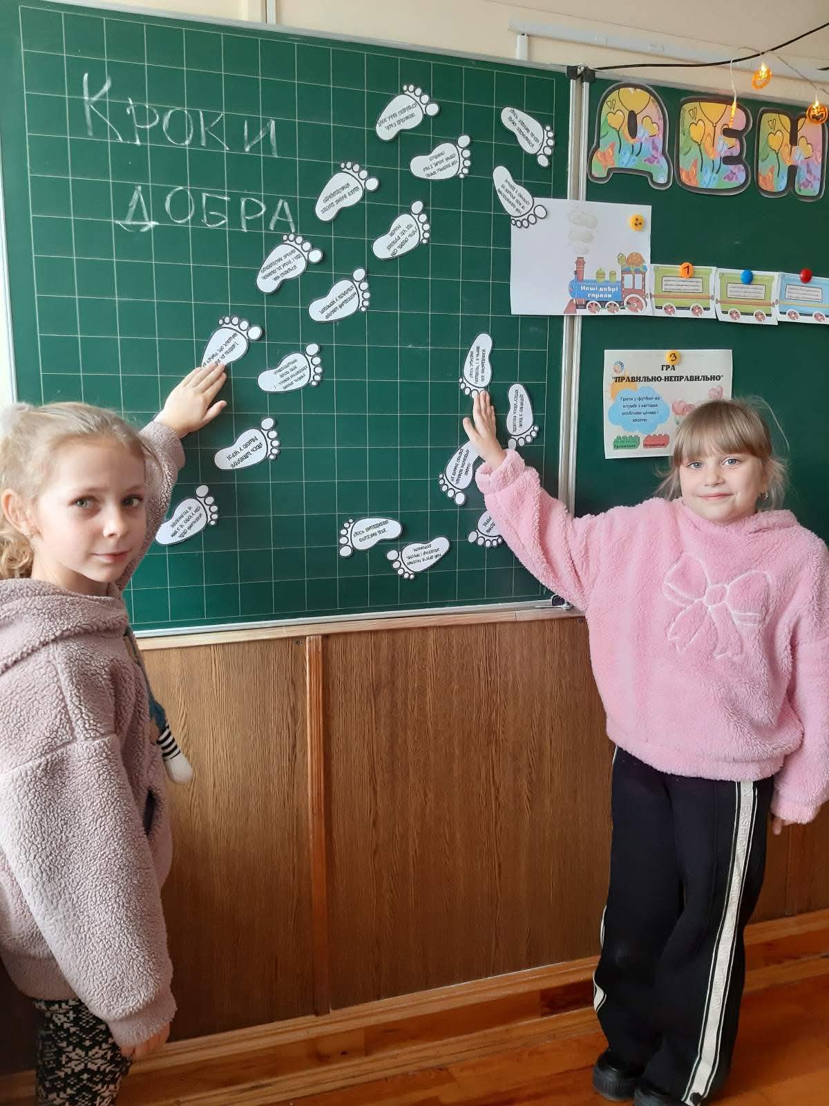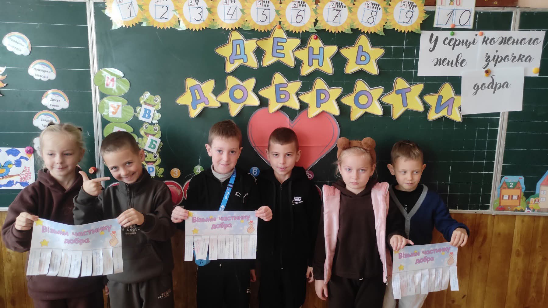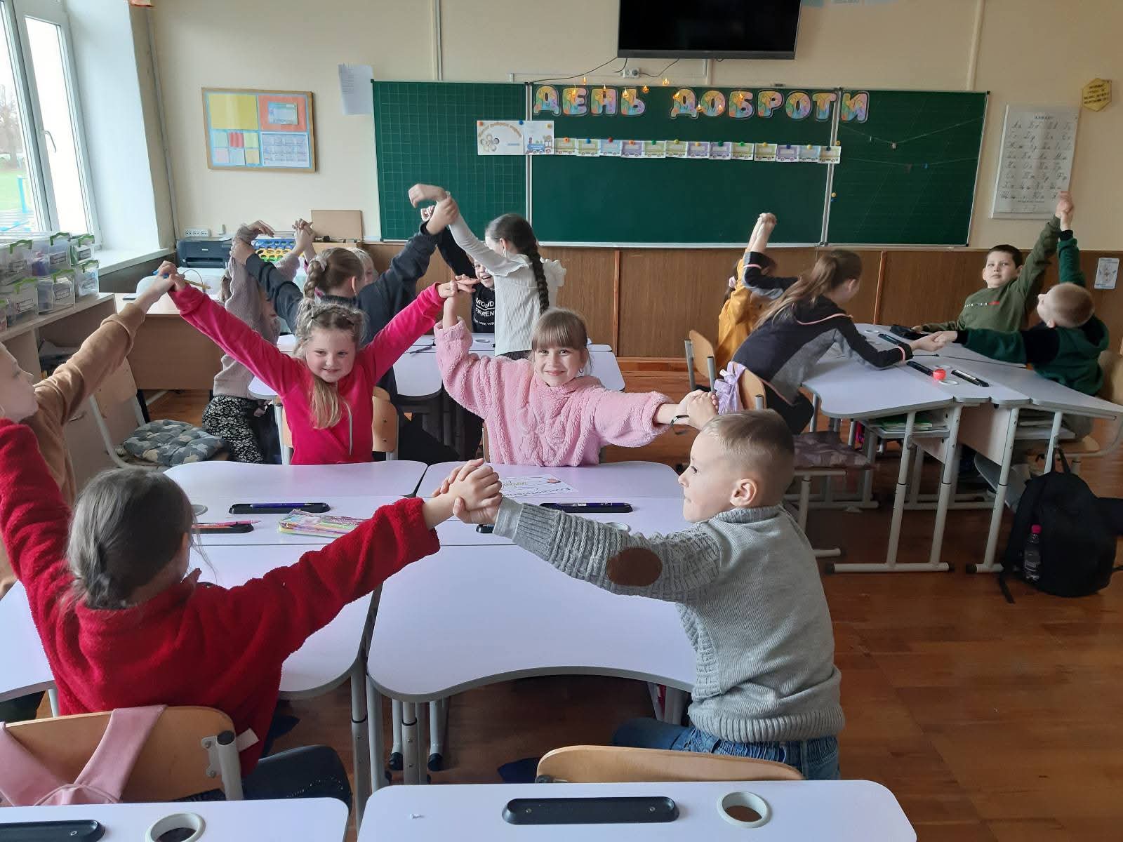Г. Сковороди, кожна дитина написала про те, щоб вона зробила, якби була добрим янголом, утворювали прислів'я про добро, виконали" кроки добра". Учні 1 класу (вчителька Костюк Наталія Олександрівна) організували челендж" Візьми частинку добра", створили" сонечко доброти". Учні 4 класу (вчитель Драло Галина Іванівна) створили" скриньку добрих справ". Учні 5-9 класів- флешмоб" Обійми друга".