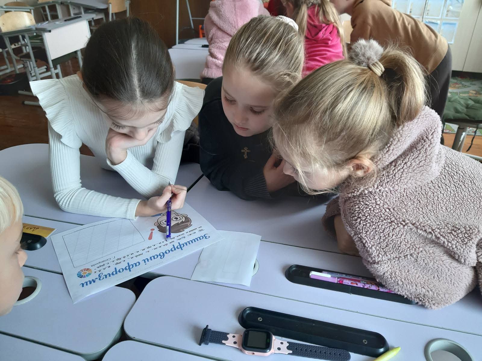 Учні 1 класу (вчитель Костюк Наталія Олександрівна) здійснили подорож у найдавніші часи та дізнались, на чому писали наші пращури . Учні виготовили глиняну книгу свого класу . Діти писали на глиняних дощечках , а також провели гру" Живі букви ".