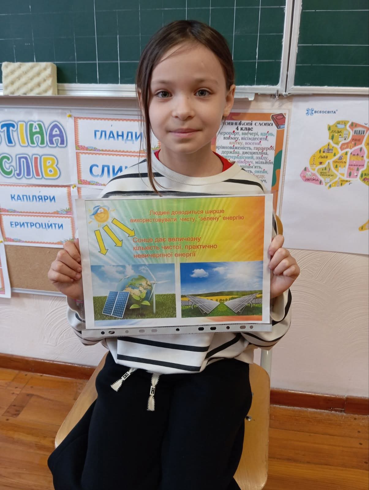 " Збережемо енергію - збережемо майбутнє ". Вчитель фізики Гнусинська Олена Ігорівна разом з учнями 5 класу підготували творчий проєкт" Від лампочки до смартбудинку ". Учні 1-4 класів взяли участь в екоквесті" Рецепт енергозбереження". Учні 4 класу взяли участь у конкурсі листівок