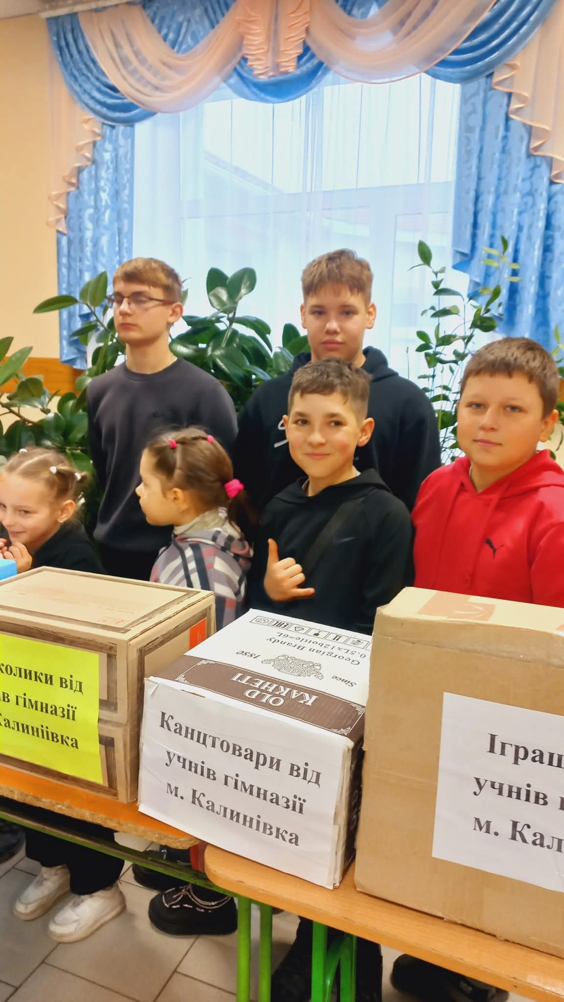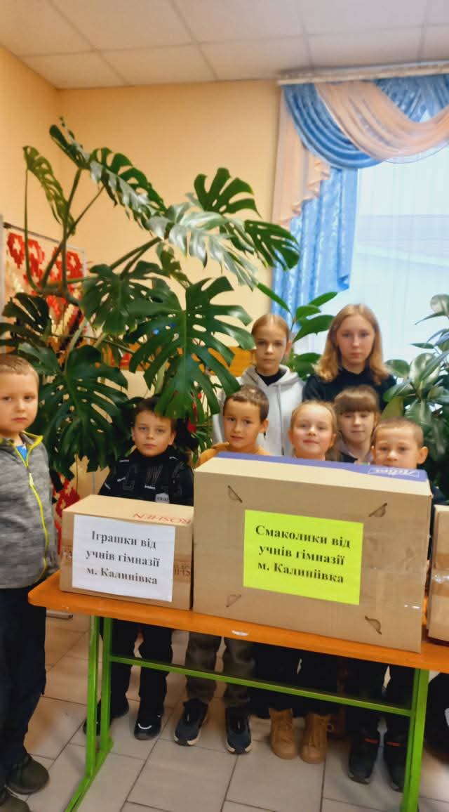 Учні гімназії міста Калинівки взяли активну участь в акції " Добрі справи". Наші діти принесли іграшки, цукерки, печиво, канцелярське приладдя. Це все спакували у 8 великих коробок. І напередодні Святого Миколая наші подарунки передадуть до Іванівської спеціальної школи, центру реабілітації дітей та молоді "Обрій" в село Дорожнє, Тульчинського центру реабілітації для осіб з інвалідністю , Жмеринського центру соціально-психологічної реабілітації дітей . Ми щиро віримо, що спільними зусиллями зможемо подолати всі труднощі та подарувати нашим дітям щасливе та мирне життя. Впевнена, що доброта, милосердя, взаємодопомога, співчуття - найкращі риси українців. Якщо ми будемо небайдужими до інших, то й самі житимемо в гармонії із собою. Робімо цей світ кращим! Дякую всім , хто долучився до цієї доброї справи!