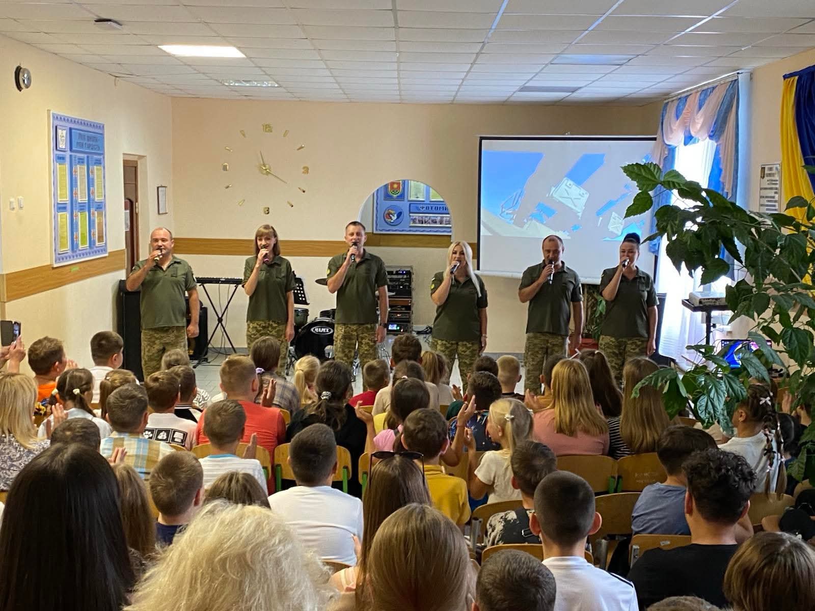 Словами не передати, який чудовий концерт сьогодні для учнів гімназії міста Калинівки організував колектив Центру військово-музичного мистецтва Повітряних сил України ЗСУ. Патріотичний душевний концерт військових музикантів та солістів став справжньою мистецькою подією у нашій гімназії. У репертуарі колективу - ліричні та народні пісні, але його основу, звісно, складають патріотичні пісні. Особливо бурхливо учні реагували оплесками на пісні "Україна переможе" та " Герої не вмирають". Неабияку насолоду ми отримали від суперового виступу духового оркестру ! А які гарні хореографічні постановки !