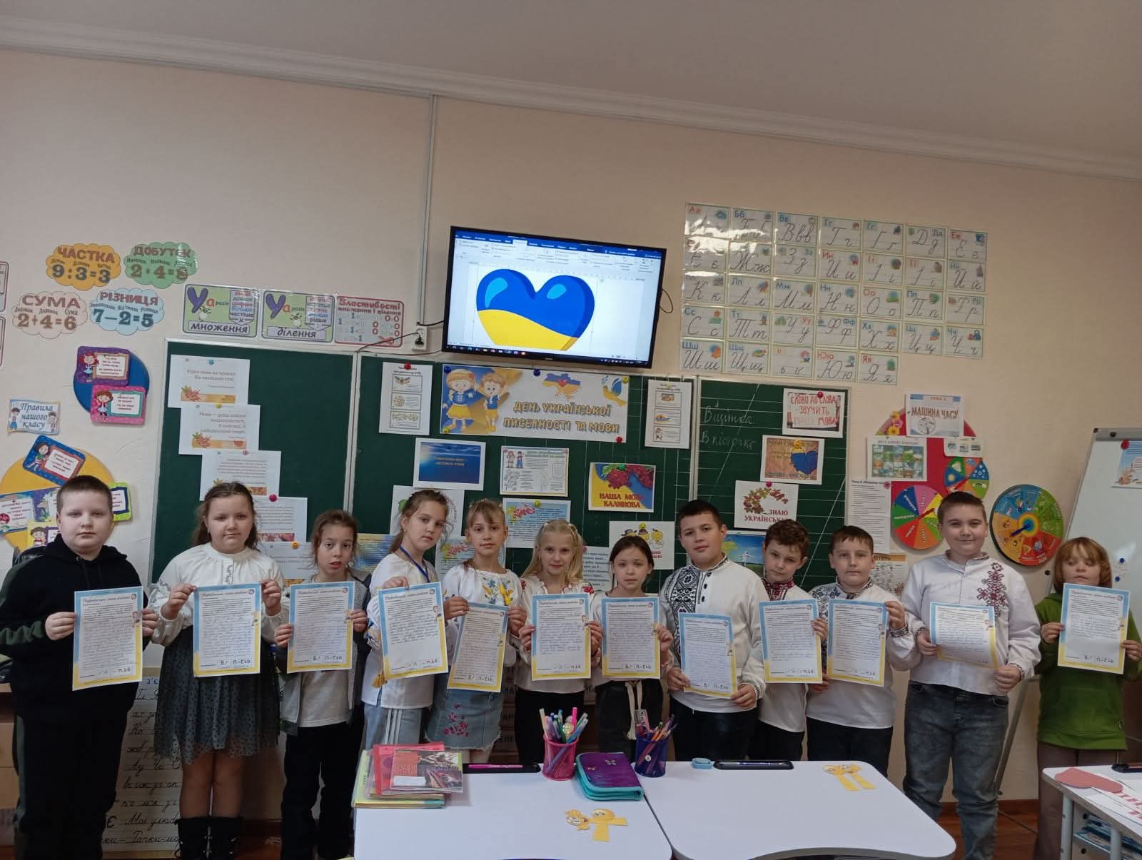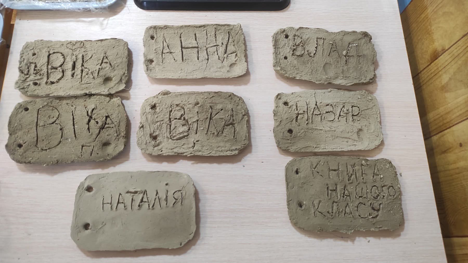 Учні 1 класу (вчитель Костюк Наталія Олександрівна) здійснили подорож у найдавніші часи та дізнались, на чому писали наші пращури . Учні виготовили глиняну книгу свого класу . Діти писали на глиняних дощечках , а також провели гру" Живі букви ".